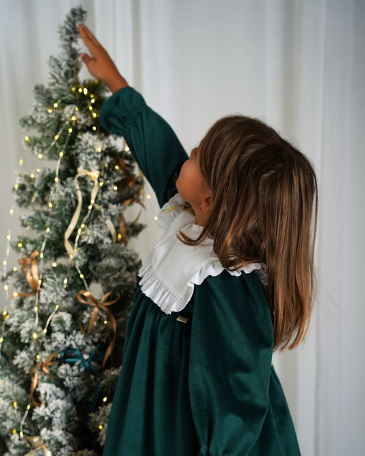 Vestido de veludo com gola rendada amovível
