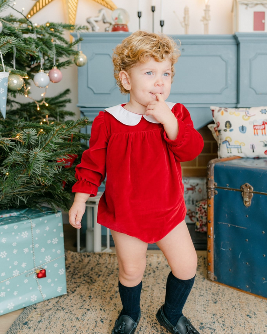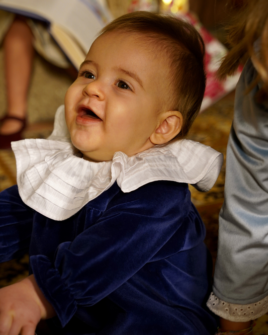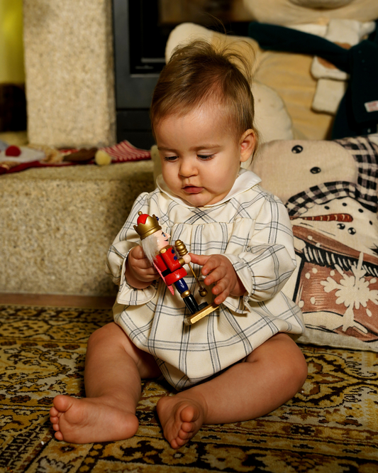 Vestido de tartan xadrez com gola e punhos em bordado inglês